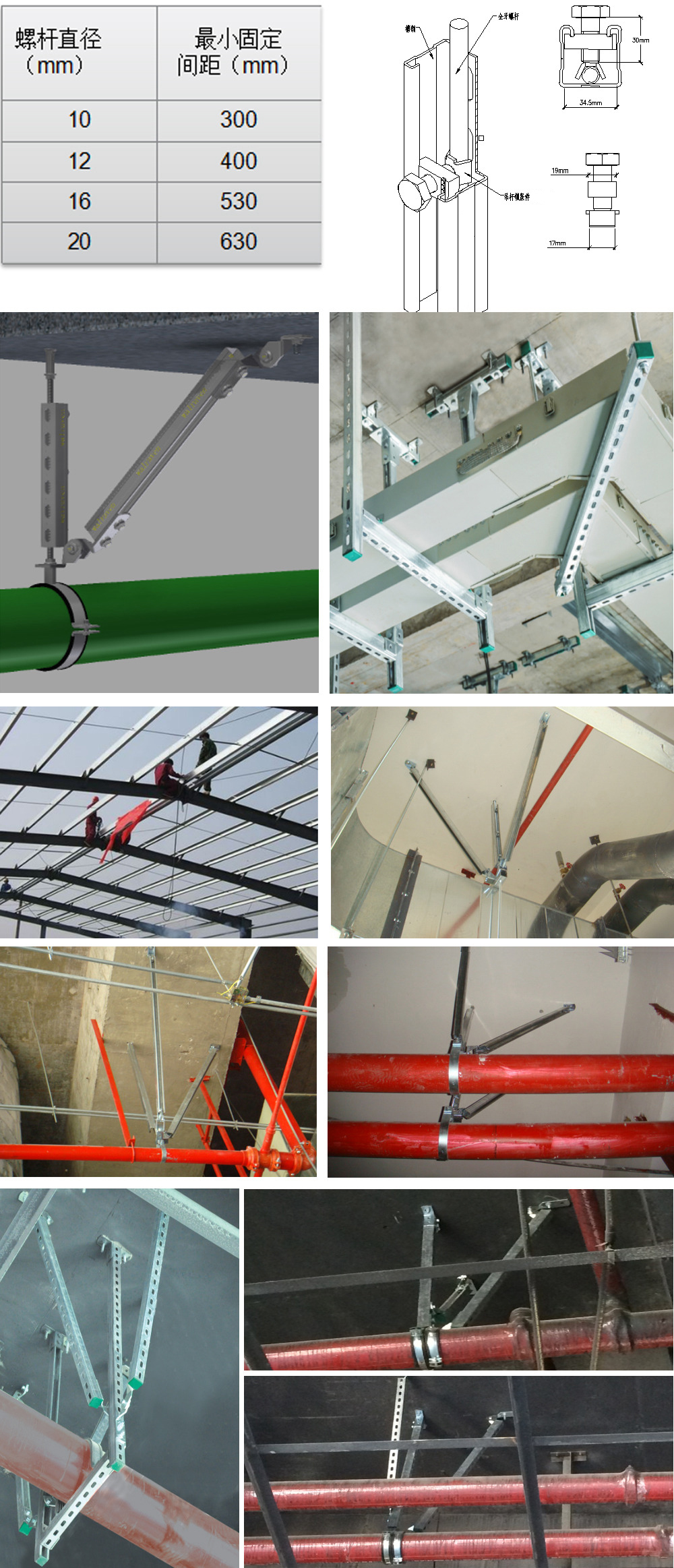 固定槽钢到螺杆,用于垂直抗震支架● 齿牙与槽钢咬合,具有抗滑功能● 8.8级尖头螺栓增加与工字钢机械咬合力,提高稳定性● 适用于各种规格的槽钢和螺杆连接● 安装完成后槽钢可能发生轻微变形● 当抗震支吊杆长细比大于100或斜撑杆件长细比大于200时,应采取加固措施● L>300mm,吊杆应当采用槽钢加强、管廊支架、抗震支架、消防支架紧固件