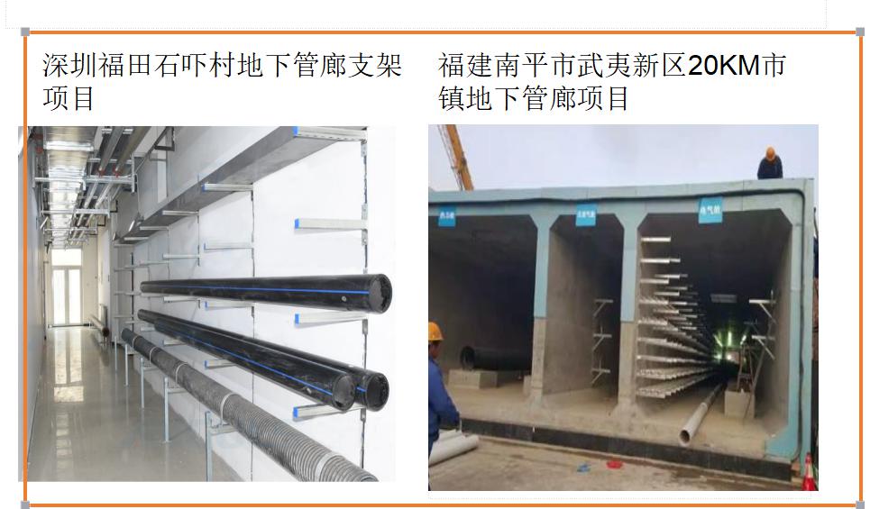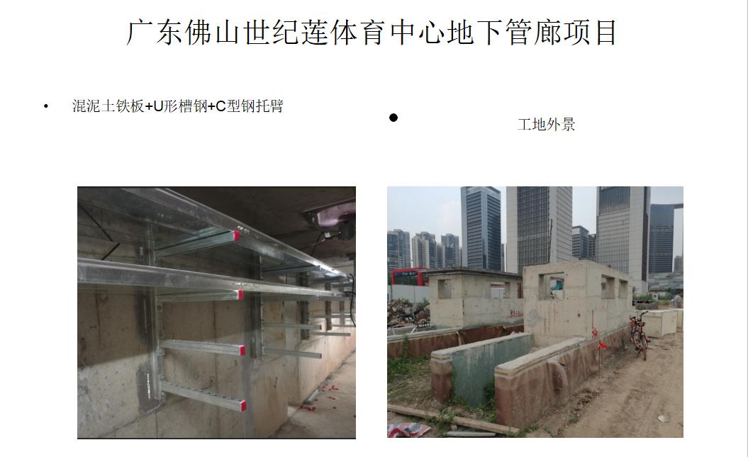 新技术新工艺 的使用对产品要求逐步提高,采用重型装配式管道成品 C 型槽钢支吊 架: 由横向和纵向两种支架, 之间通过连接扣件相连, 并分别于管廊墙面和地面采用预埋槽 道 T 头螺栓连接方式,根据管廊排布方式,高度 1300~2700,间距 3000mm,*大承重 荷载根据管道荷载计算选用合适的重型截面槽钢。