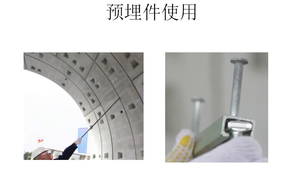 预埋件预埋:检查预埋件→预埋件的定位→预埋件固定→检查→混凝土浇灌→拆模板→清理预→预埋件检查。 3.预埋件检查