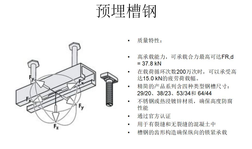 固定锚栓与U型槽背面牢固连接,锚栓之间间距恰好与土建的横