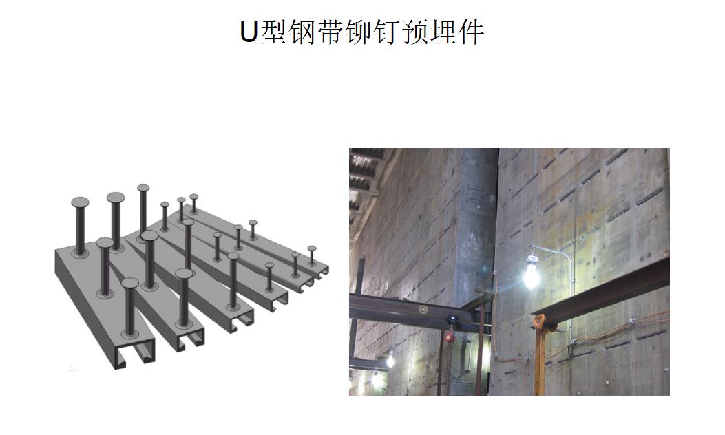 4. 预埋件定位与固定(关键工序、质量控制点) (1)根据剪力墙的分格尺寸,按工程预埋件点位布置图的位置、品种、数量要求进行埋设。 (2)预埋件距墙体构件的边距应按设计要求确定。 (3)预埋件的定位偏差应符合下列要求:标高偏差不大于10.0mm,轴线与幕墙轴线的偏差前后不大于10.0mm,左右偏差不大于20.0mm。 (4) 检查预埋件定位完毕后,检验员应进行检查并记录。 (5) 预埋件定位后,把预埋件上锚筋与主体结构的钢筋焊接牢固。定位后预埋件表面与模板表面应紧密贴合。 5.焊接 固定锚栓与U型槽背面牢固连接,锚栓之间间距恰好与土建的横