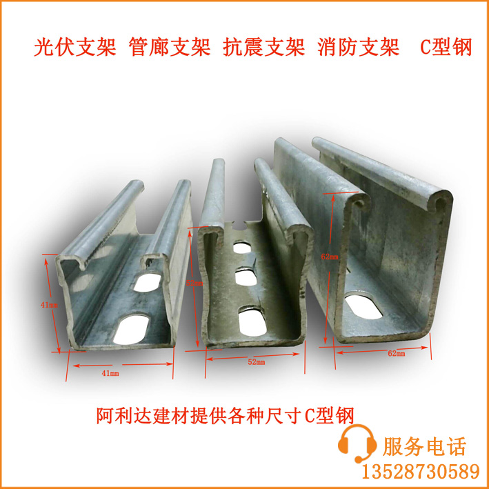 光伏支架通常用C型钢 Q235B 表面热浸锌处理防生锈 规格有很多,具体要看什么地方适合用那种规格