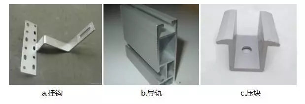 瓦片屋顶安装系统主要由挂钩、导轨、压块以及螺栓等连接件组成。