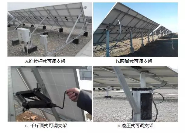 固定倾角可调式是指在太阳入射角变化转折点,定期调节固定式支架倾角,增加太阳光直射吸收,在成本略增加情况下提高发电量。