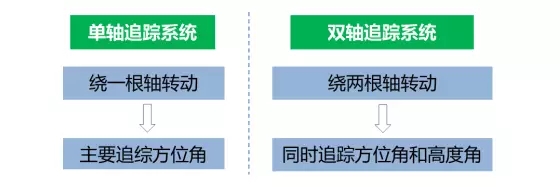 跟踪式光伏支架通过机电或液压装置使光伏阵列随着太阳入射角的变化而移动,从而使太阳光尽量直射组件面板,提高光伏阵列发电能力。根据追踪轴数量可分为:单轴追踪系统和双轴追踪系统。